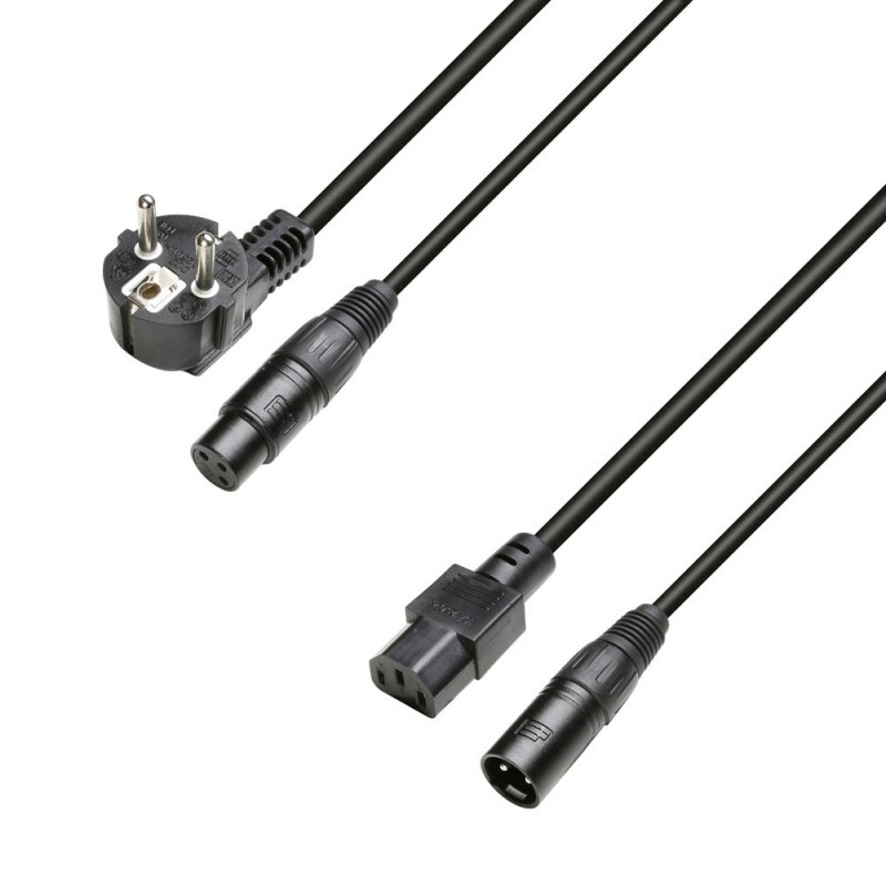 Ström- och ljudkabel CEE7/7 & XLR hona till C13 & XLR hane 3×1,5mm²