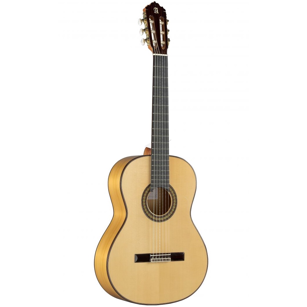7FC är en helsolid flamencogitarr från spanska Alhambra. Sidor och botten i cypress, lock i gran, hals i ebenholtsförstärkt mahogny samt greppbräda i ebenholts.