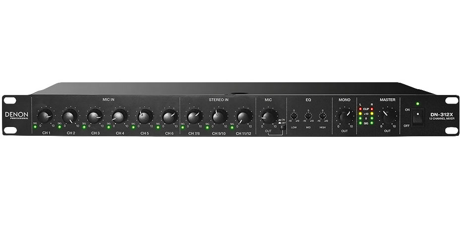 Ultra-slim 1U rack-mounted 12-channel mixer.