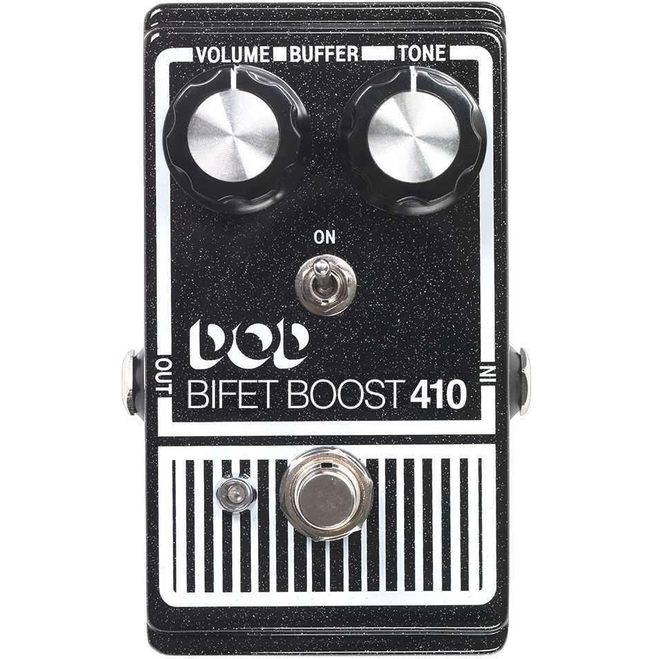 Boost-pedal baserad på DOD:s original Bifet Preamp 410, nu med bufferswitch och true bypass. Drivs med ett 9V batteri (medföljer ej) eller nätadapter (säljs separat).