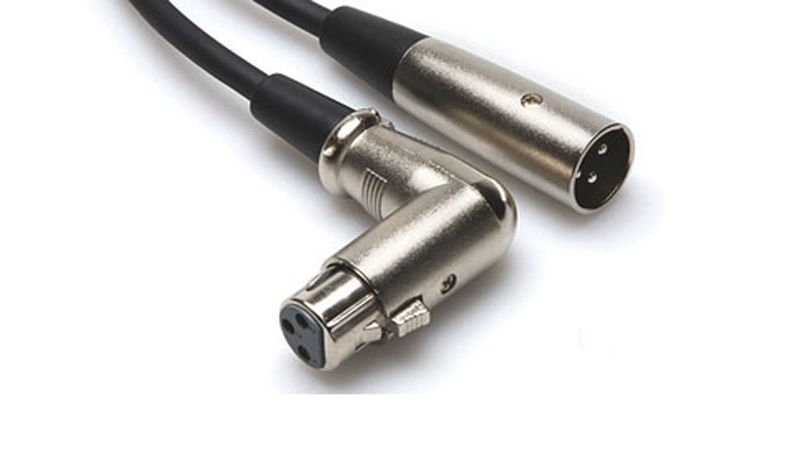 Audiokabel, 90cm. XLR Hane – Vinklad XLR Hona. Svart.