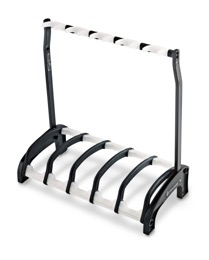 17525 ”Guardian 5″Gitarrställ som säkert förvarar 5st elgitarrer utan att vidröra strängarna. Tillverkad i lackvänliga material och har plektrumhållare bakom varje gitarrplats. – 688x173x670mm, 4,7kgVit & Svart