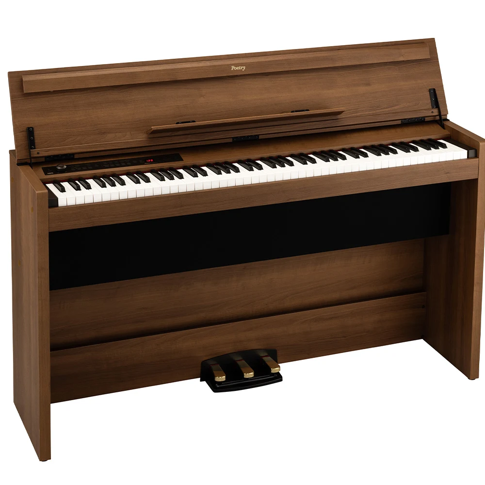 Korg Poetry Magnifique är ett exklusivt digitalpiano som förenar två ikoniska pianoljud: det moderna Italian Concert Grand och det historiska 1843 PLEYEL – Chopins eget favoritpiano, noggrant återställt och samplat. Med elegant träfinish, RH3-klaviatur och en ny förstärkt konstruktion erbjuder det en uttrycksfull spelkänsla och rik resonans.