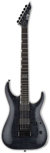 As part of the LTD Deluxe Series designed for professional musicians, the LTD MH-1000 EverTune gives you more than you bargained for. It offers set-thru construction, meaning the neck extends deeply into the guitar’s body cavity, offering unparalleled access to the upper frets with a smooth heel joint. It has a mahogany body with a flamed maple top in a See Thru Black finish, highlighting the great look of the figured wood grain. It also features a three-piece thin U-shaped maple neck, and an ebony fingerboard with 24 extra-jumbo frets. High-class touches are included, like its multiple white binding and Grover tuners. But the MH-1000 EverTune takes things a step further with the inclusion of active EMG 85 (neck) and EMG 81 (bridge) pickup for tones that range from dark and menacing through screaming and aggressive. Finally, the EverTune constant tension bridge ensures that almost any conditions, your guitar will stay in perfect tune, and have incredibly accurate intonation at every point on the fingerboard.
