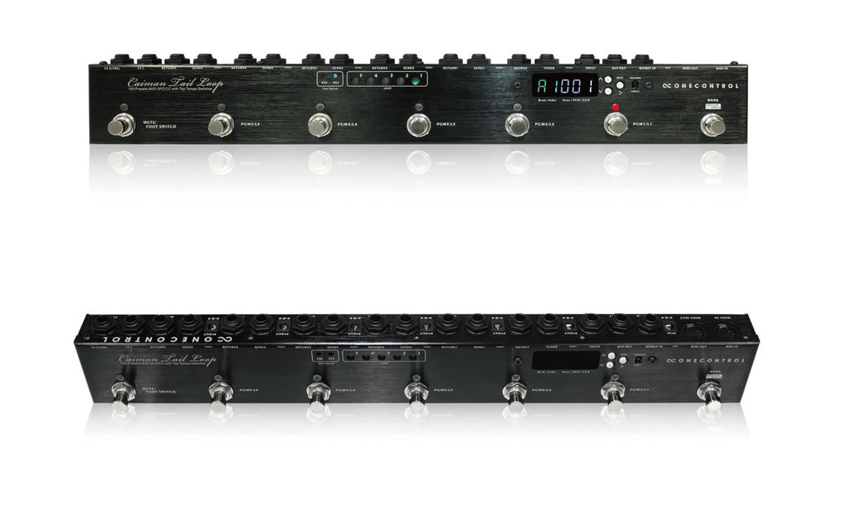 The Caiman Tail Loop is One Control’s newest programmable switcher. This incredibly compact 5 loop programmable switcher features all the basic, yet important features a musician needs. Caiman Tail Loop gives you quick access to up to 150 preset effect combinations, via 6 lanes, 5 programmable banks, and 5 programs per bank. The unit offers MIDI compatibility, with each preset storing 5 MIDI PC and 5 CC messages, and also allows you to send 2 latch/unlatch switch signals, for changing amp channels, etc. You can use the Caiman Tail Loop it either Program mode or Direct mode, in which each of 5 effect loops is activated individually. You may also bypass the entire switcher and all effects completely. Caiman Tail Loop features six DC power outputs for powering your effects.