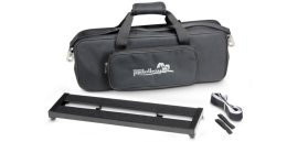 Universal aluminium Pedalboard for the storage of all commercially available floor effects. The cross bars are already covered with Velcro (fleece), a sufficient amount of hook strap is also included. Power supplies and similar peripheral devices can be mounted below the board. For this the Pedalboard features 4 practical hooks on the underside. 2 Elastic bands are supplied – making fixation easyThis set also features a high-quality padded softcase with an accessory compartment and a shoulder strap.