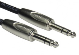 Symmetrical patch cable. Stereo on-off-pedal cable. 2 cores shielded SCHULZ stereo cable MK 1 braided shield with copper wire, OFC, cotton filler outside diameter 6 mm appr., 2 x 0,2 mm² 2 plugs 6.3 mm stereo, S 2 length: 1 m