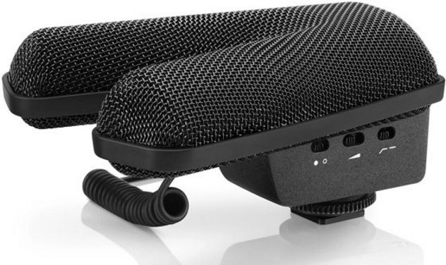 Två shotgun-mikrofoner i ”V-stereo”-konfiguration, 132 dB SPL, lowcut, batteridriven (100h driftstid)